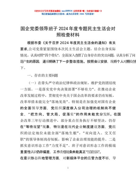 / 国企党委领导班子2024年度专题民主生活会对照检查材料