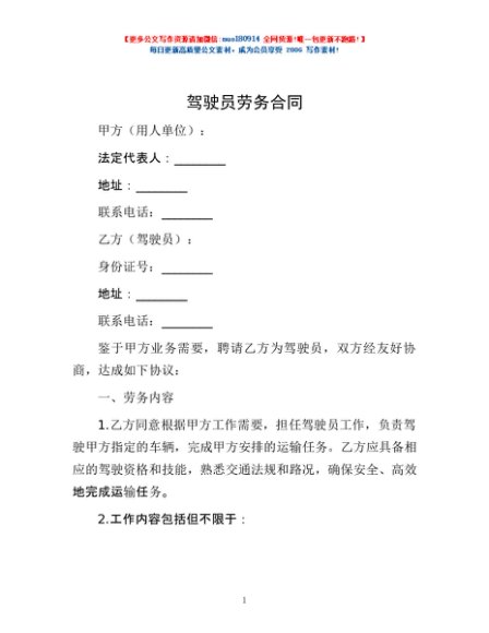 / 驾驶员劳务合同