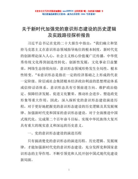 / 关于新时代加强党的意识形态建设的历史逻辑及实践路径探析报告