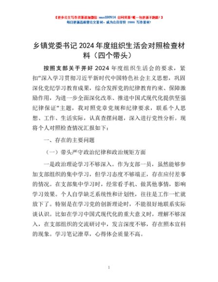/ 乡镇党委书记2024年度组织生活会对照检查材料(四个带头)