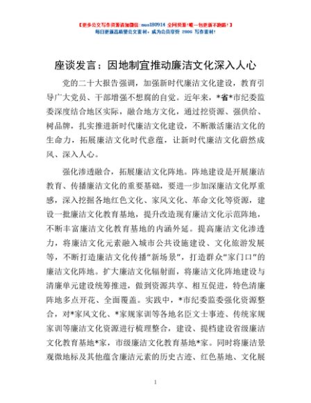 座谈发言:因地制宜推动廉洁文化深入人心