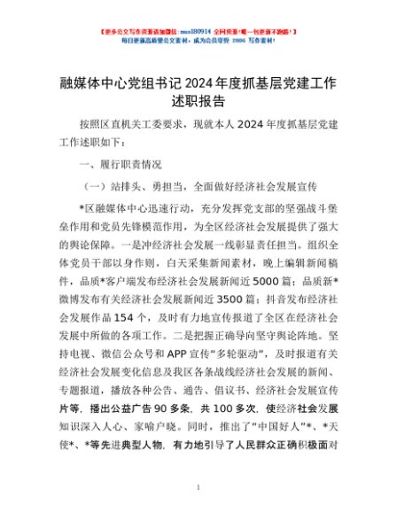 / 融媒体中心党组书记2024年度抓基层党建工作述职报告
