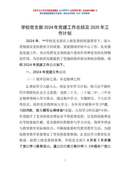 / 学校党支部2024年党建工作总结及2025年工作计划