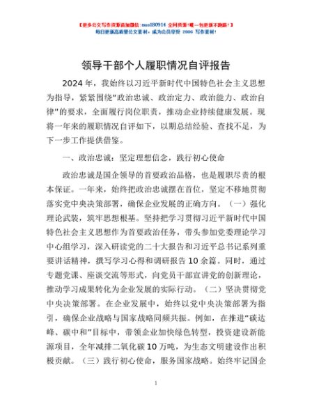/ 领导干部个人履职情况自评报告