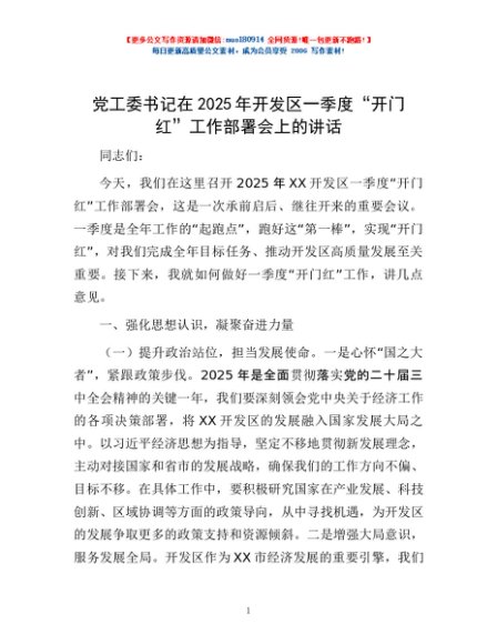 / 党工委书记在2025年开发区一季度“开门红”工作部署会上的讲话