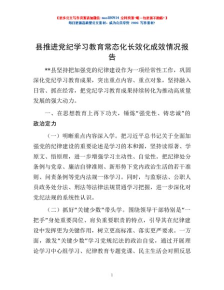 / 县推进党纪学习教育常态化长效化成效情况报告