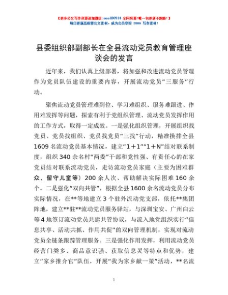 / 县委组织部副部长在全县流动党员教育管理座谈会的发言
