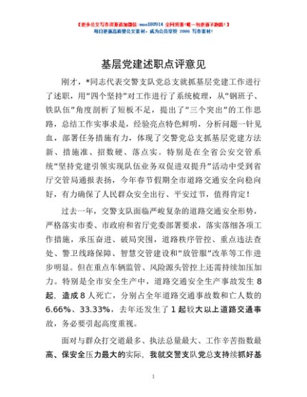 / 基层党建述职点评意见