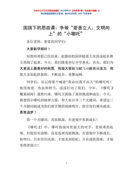 / 国旗下的思政课:争做“爱善立人、文明向上”的“小哪吒”