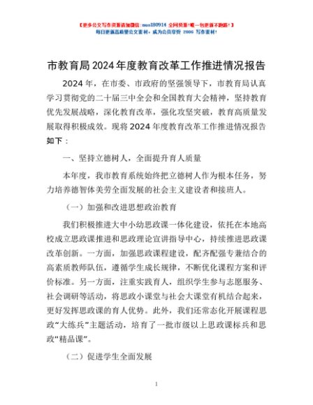 / 市教育局2024年度教育改革工作推进情况报告