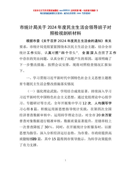 / 市统计局关于2024年度民主生活会领导班子对照检视剖析材料