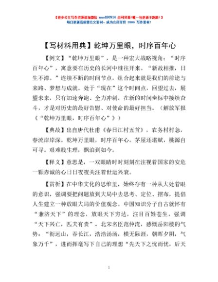 / 【写材料用典】乾坤万里眼,时序百年心