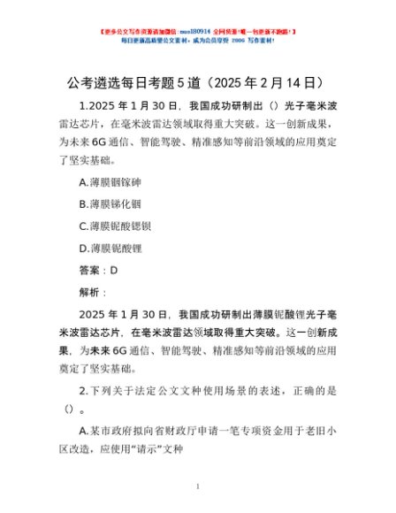 / 公考遴选每日考题5道(2025年2月14日)
