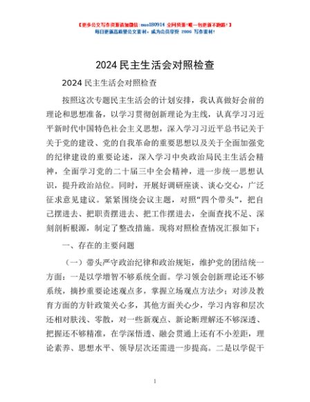 / 2024民主生活会对照检查