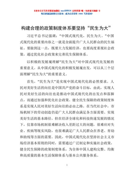 / 构建合理的政策制度体系要坚持“民生为大”