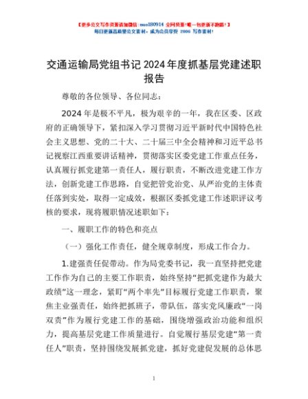 / 交通运输局党组书记2024年度抓基层党建述职报告