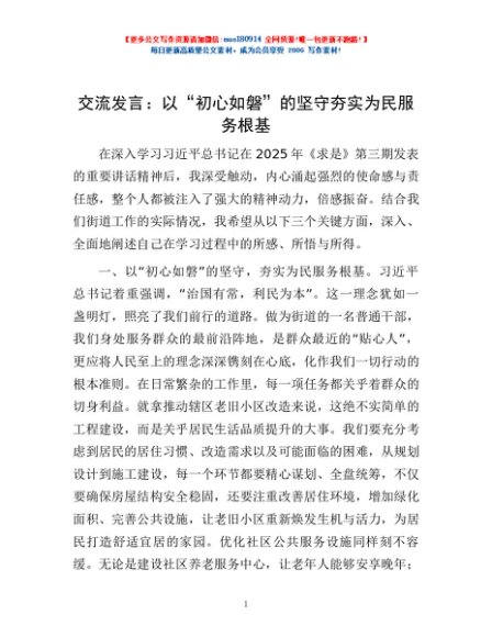 / 交流发言:以“初心如磐”的坚守 夯实为民服务根基