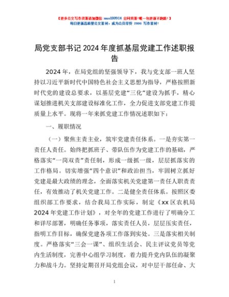 / 局党支部书记2024年度抓基层党建工作述职报告
