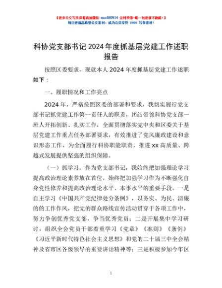 / 科协党支部书记2024年度抓基层党建工作述职报告