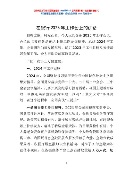 / 在银行2025年工作会上的讲话