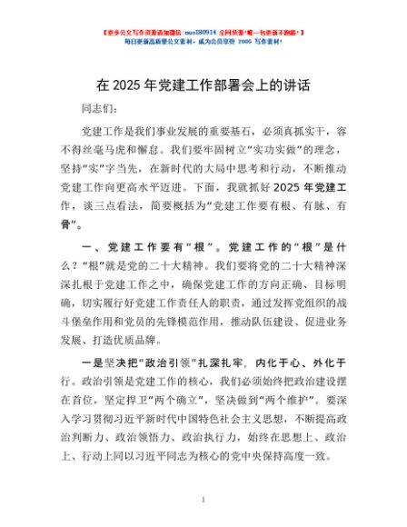 / 在2025年党建工作部署会上的讲话