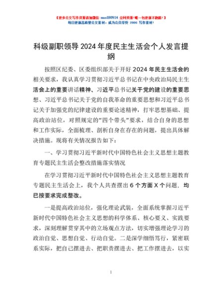 / 科级副职领导2024年度民主生活会个人发言提纲