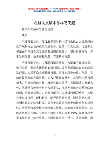 / 在机关文稿中怎样写问题
