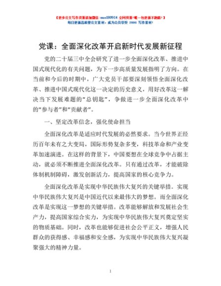 / 党课:全面深化改革 开启新时代发展新征程