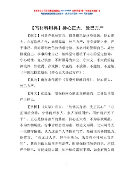 【写材料用典】持心正大,处己方严