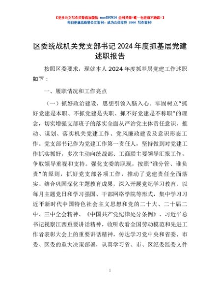/ 区委统战机关党支部书记2024年度抓基层党建述职报告