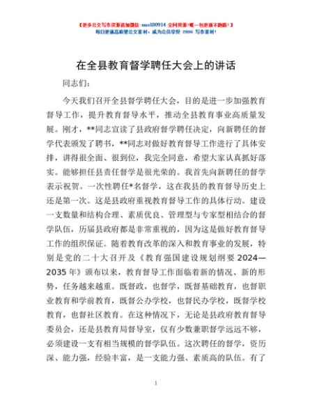 / 在全县教育督学聘任大会上的讲话