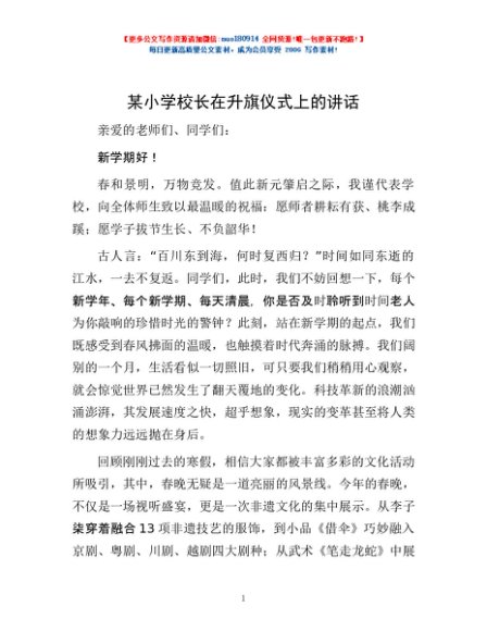 / 某小学校长在升旗仪式上的讲话