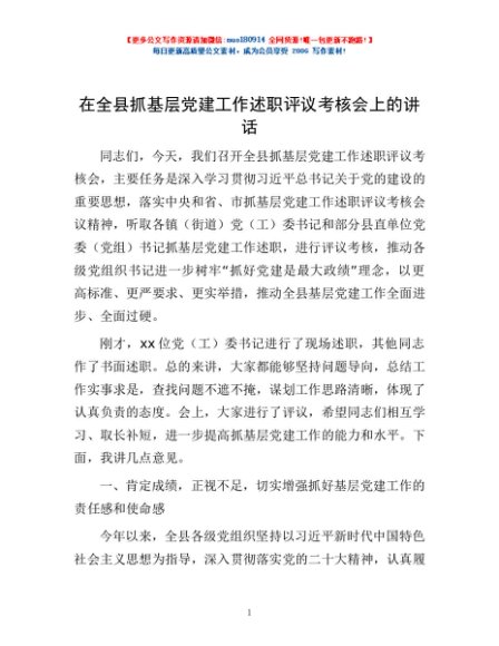 / 在全县抓基层党建工作述职评议考核会上的讲话