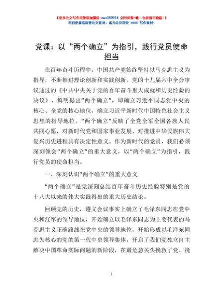 / 党课:以 “两个确立” 为指引,践行党员使命担当
