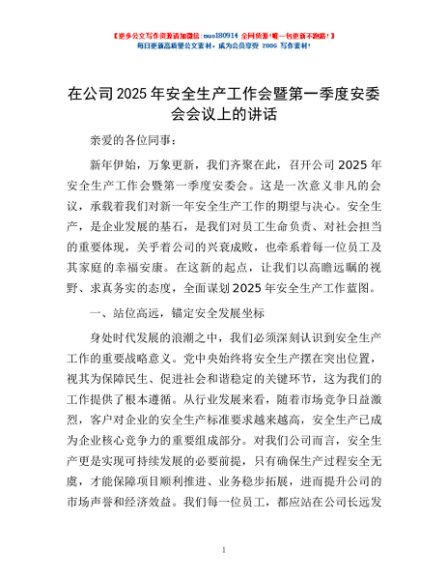 / 在公司2025年安全生产工作会暨第一季度安委会会议上的讲话