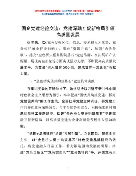 / 国企党建经验交流:党建深融互促新格局引领高质量发展