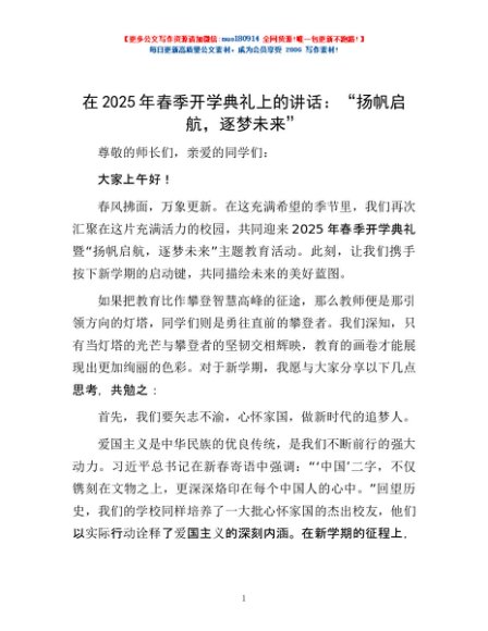 / 在2025年春季开学典礼上的讲话:“扬帆启航,逐梦未来”