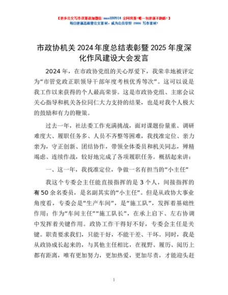 / 市政协机关2024年度总结表彰暨2025年度深化作风建设大会发言