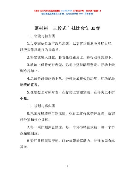 / 写材料“三段式”排比金句30组