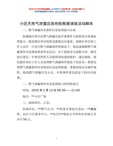 / 小区天然气泄露应急抢险救援演练活动脚本