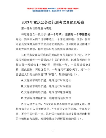 / 2003年重庆公务员行测考试真题及答案