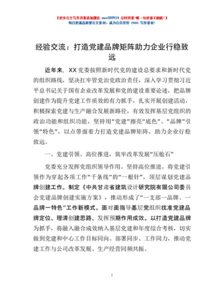 / 经验交流:打造党建品牌矩阵 助力企业行稳致远