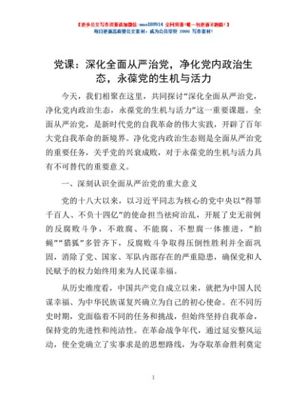 / 党课:深化全面从严治党,净化党内政治生态,永葆党的生机与活力