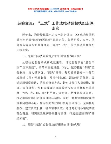 / 经验交流:“三式”工作法推动监督执纪走深走实