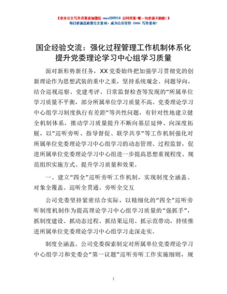 / 国企经验交流:强化过程管理工作机制体系化 提升党委理论学习中心组学习质量