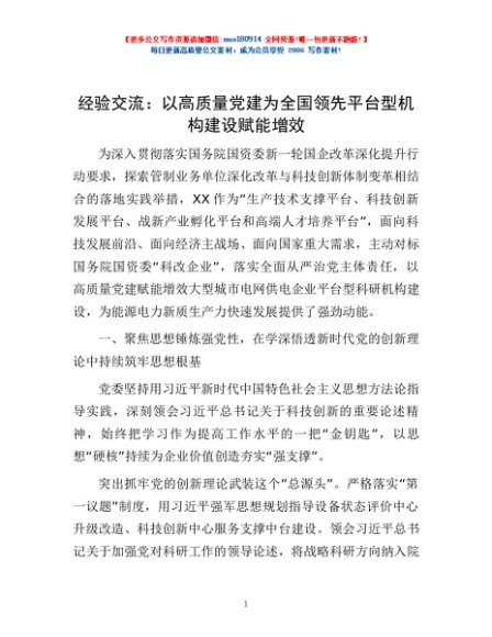 / 经验交流:以高质量党建为全国领先平台型机构建设赋能增效