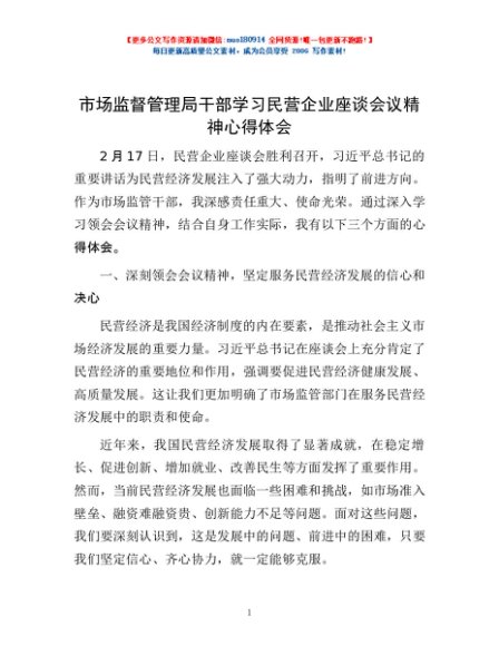 / 市场监督管理局干部学习民营企业座谈会议精神心得体会