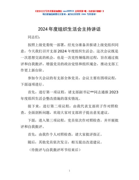 / 2024年度组织生活会主持讲话