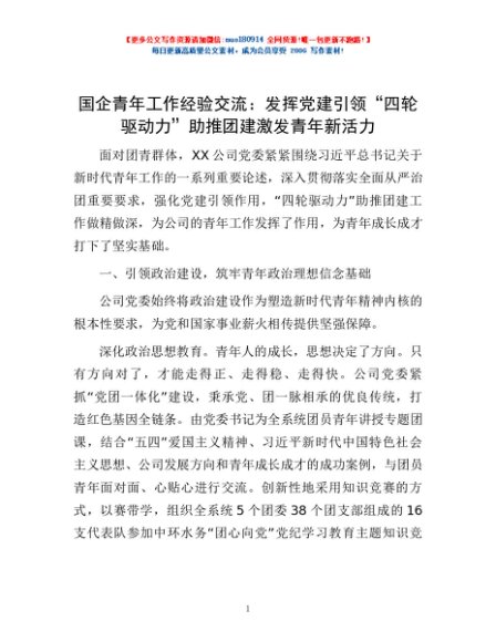 / 国企青年工作经验交流:发挥党建引领“四轮驱动力”助推团建激发青年新活力