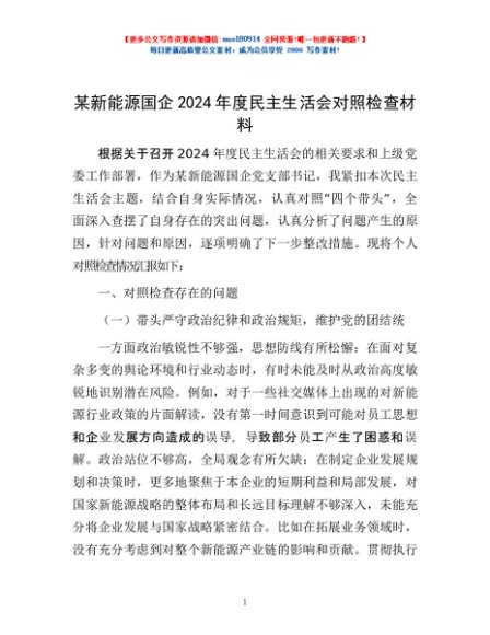 / 某新能源国企2024年度民主生活会对照检查材料